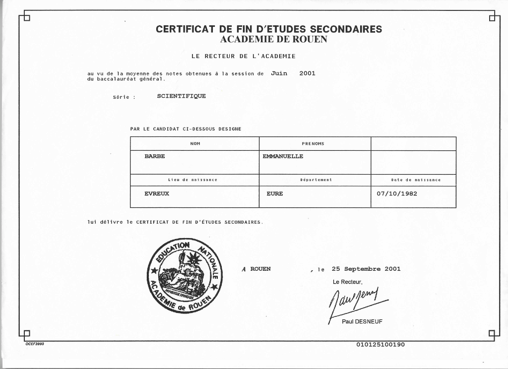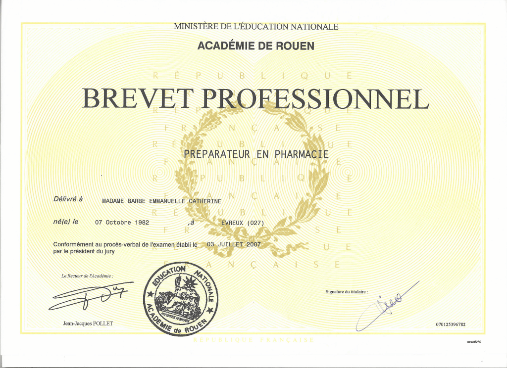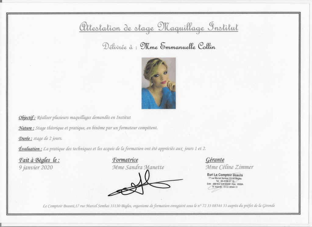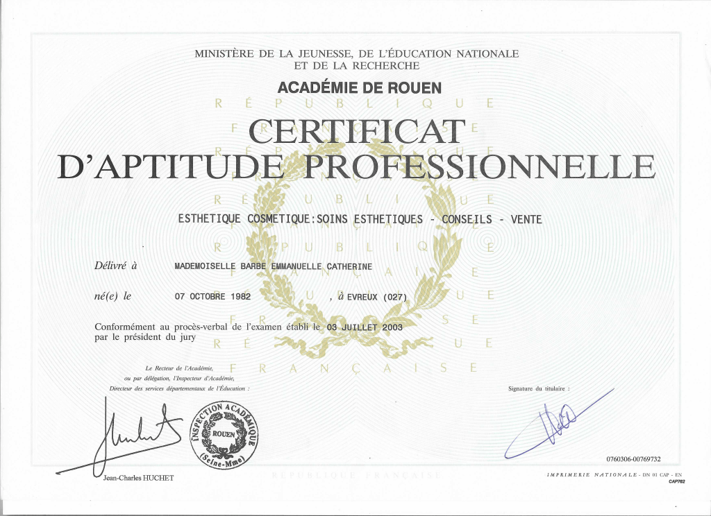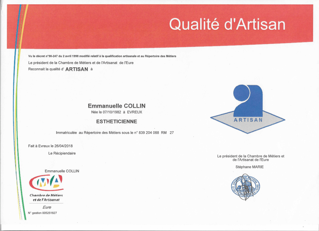 Diplômée depuis juin 2003 et immatriculée au répertoire des métiers depuis le 02 Mai 2018.