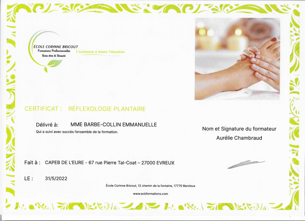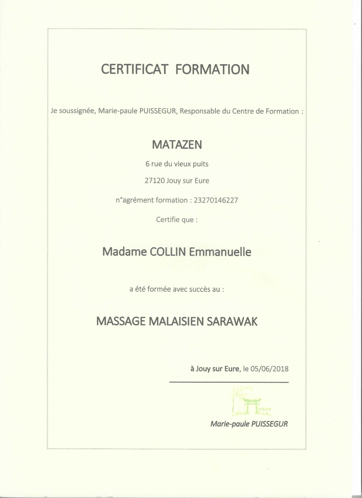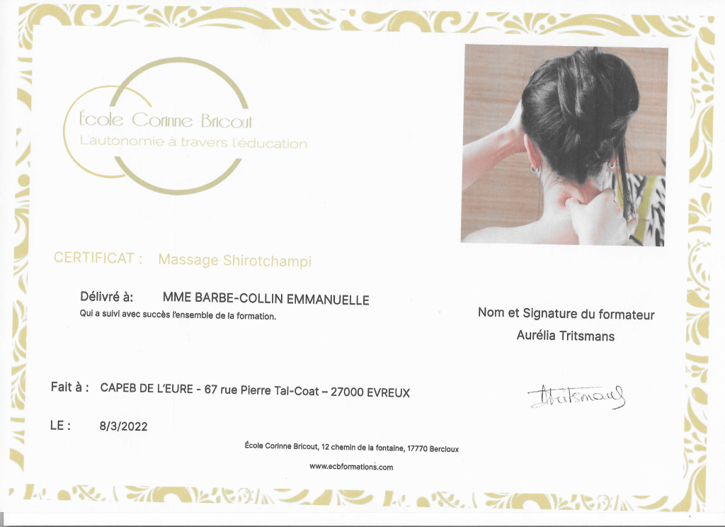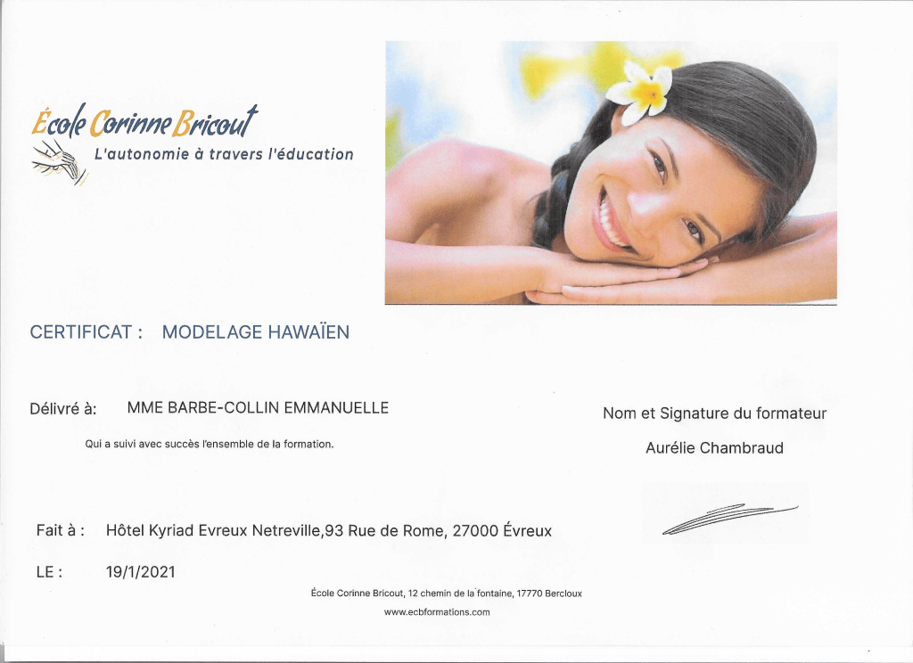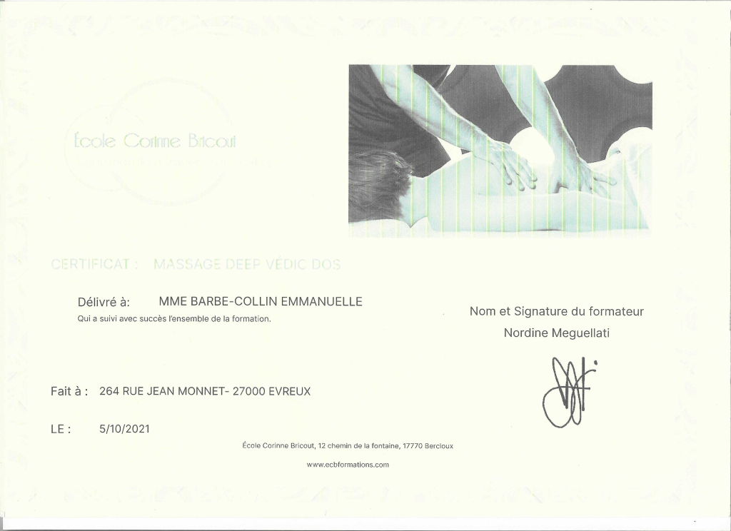 Quelques diplômes attestant la bonne pratique des massages proposés :