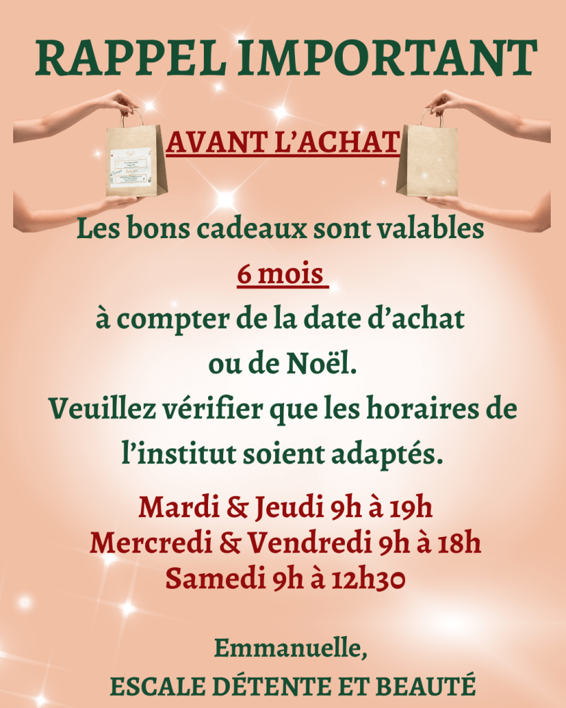 – Si celles-ci sont uniquement le Samedi ou le Mercredi, et fin de journée comme annoncé à chaque achat de bon cadeau, il faudra être patient.