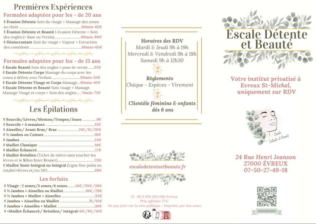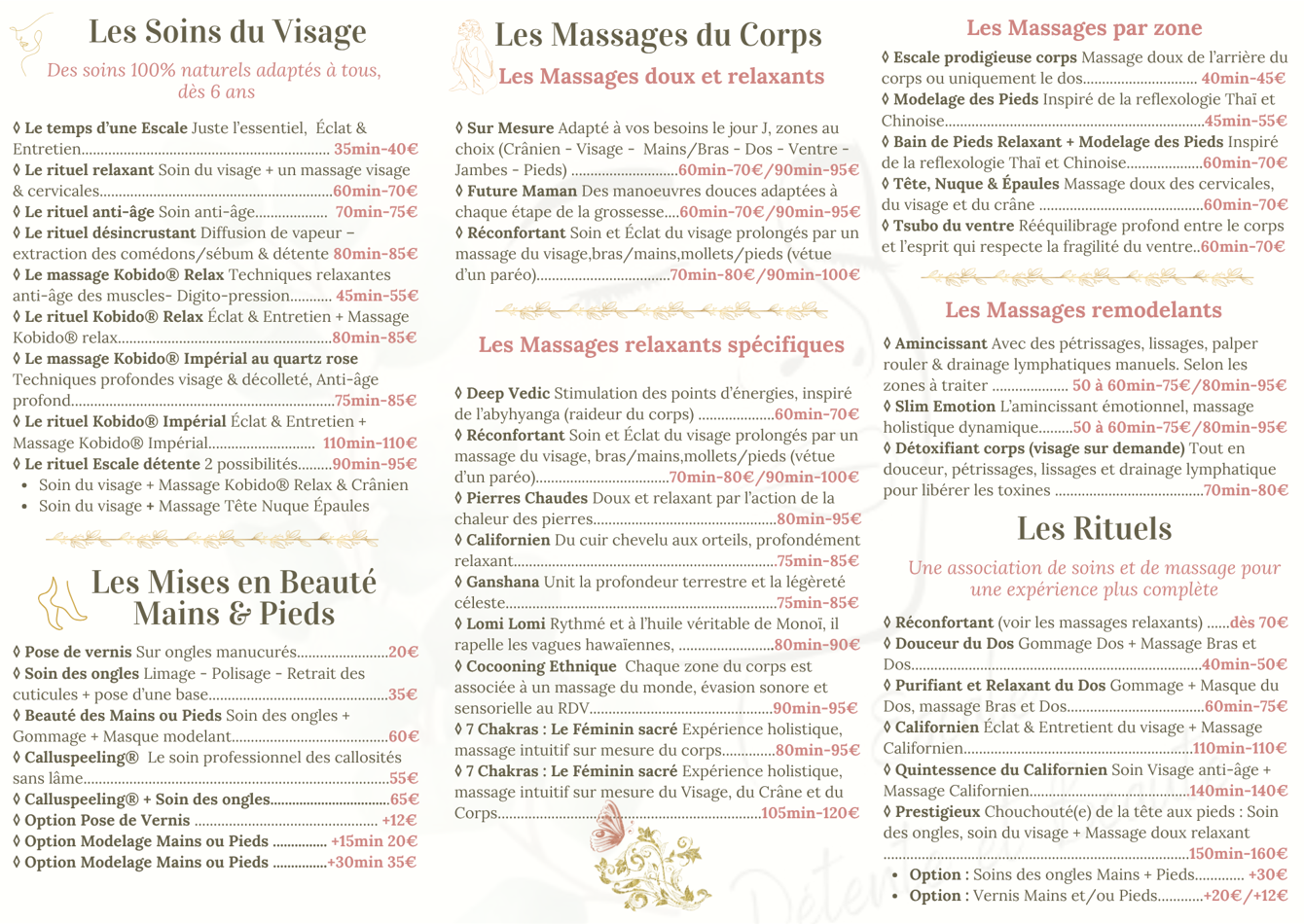 À toutes les femmes cherchant une pause détente dans leur quotidien, soyez les bienvenues chez Escale Détente et Beauté. Un espace exclusivement dédié à votre confort et à votre sérénité ainsi qu'aux personnes qui vous sont chères.